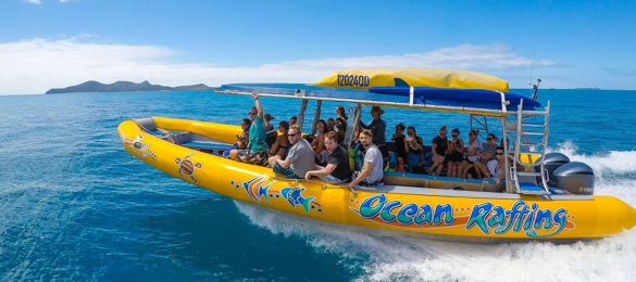 At Airlie Beach we enjoy an exciting trip to Whitehaven Beach onboard a 12 metre semi-rigid inflatable, originally designed and built as rescue crafts powered by twin 500hp Yamaha engines, along with reef snorkelling allowing you to experience tropical paradise away from the crowds.
